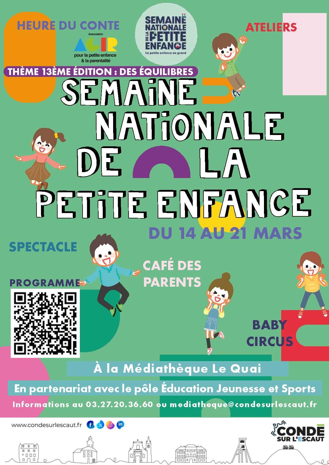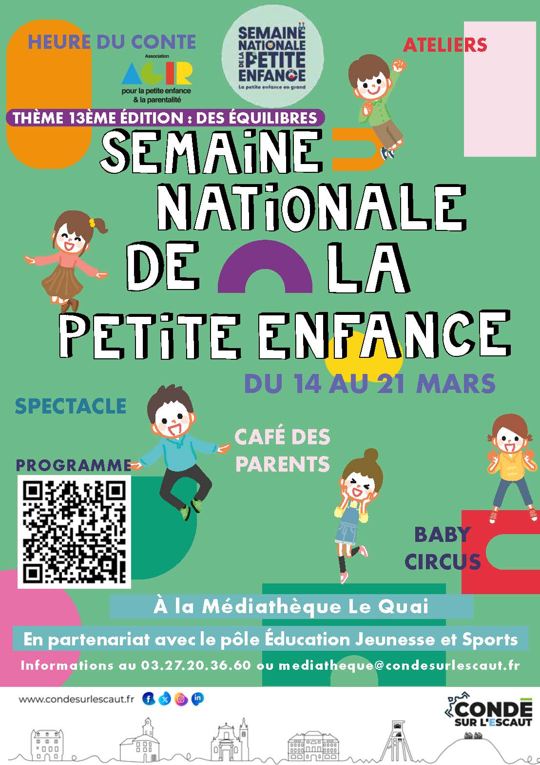 Du 14 au 21 mars, retrouvez la 13ème édition de la Semaine Nationale de la Petite Enfance autour du thème « Des équilibres ». Cet événement est organisé en partenariat avec le pôle Éducation Jeunesse et Sports, un programme d'animations gratuit est proposé aux familles. Les activités se dérouleront au sein de trois structures de la ville : la Médiathèque Le Quai, l'Espace Famille et la crèche Caracol.