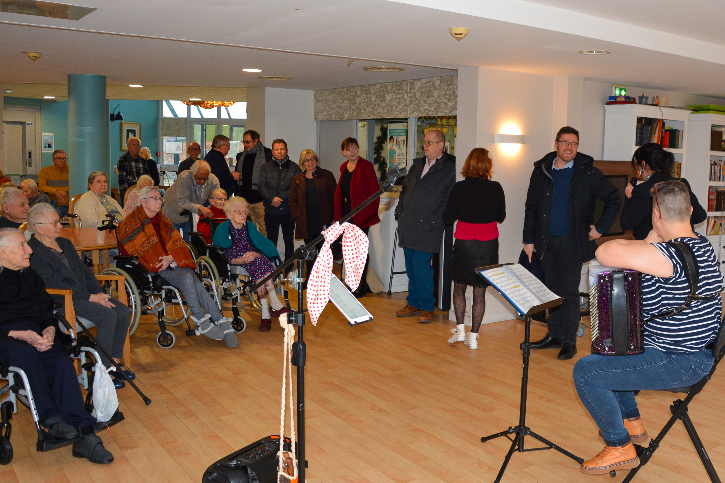 L'événement comprenait des moments musicaux avec des chansons et de l'accordéon, créant ainsi une atmosphère festive.
